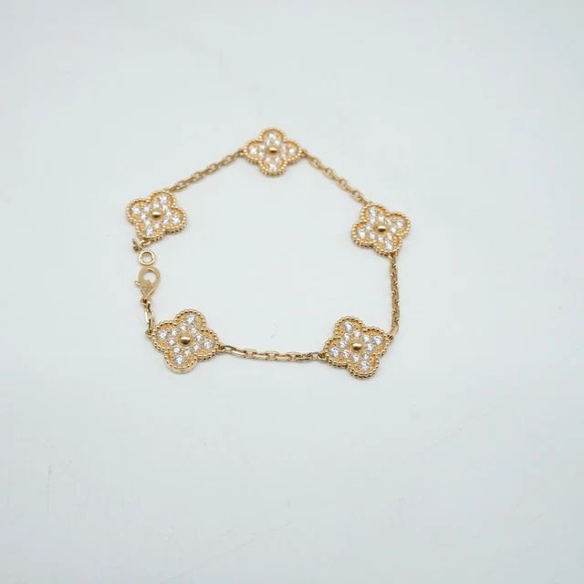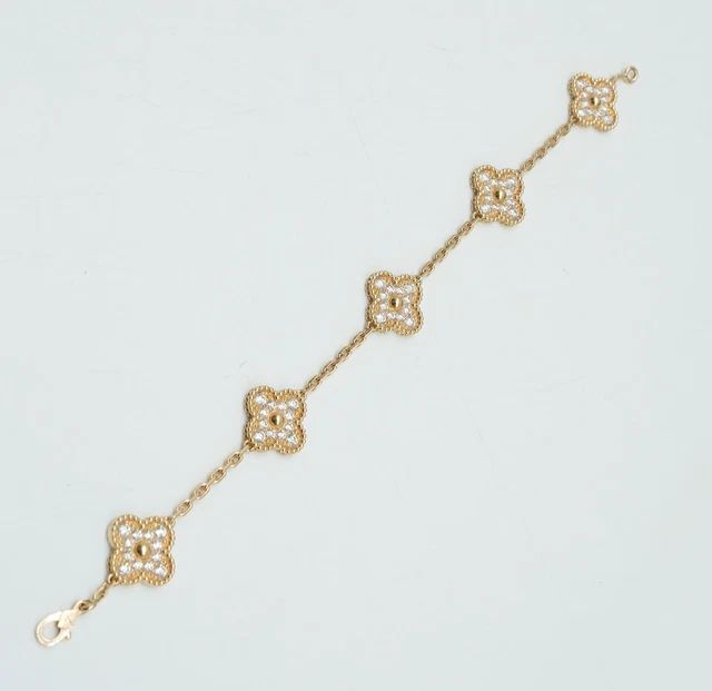 Bracelet Vintage Alhambra 5 motifs, or jaune, diamants ronds; qualité diamants DEF, IF à VVS